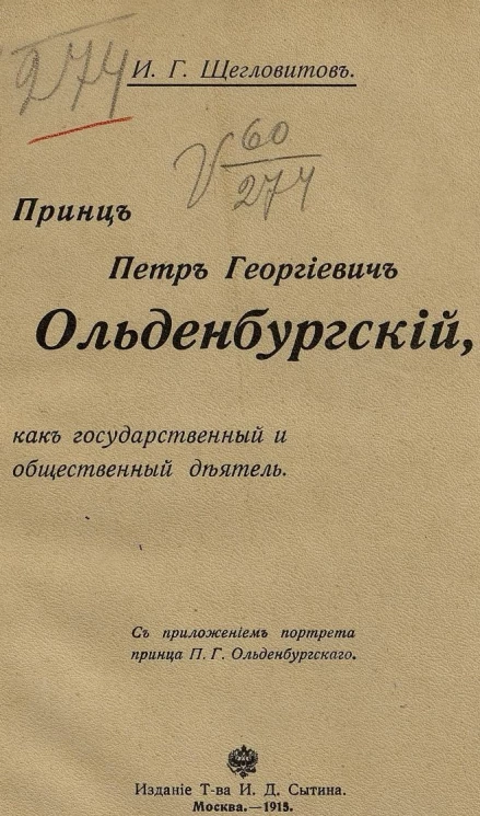 Издание Принц Петр Георгиевич Ольденбургский, как государственный и общественный деятель Вы можете заказать у нас. Мы предлагаем изготовление под заказ репринтных книг, отчетов, докладов, журналов, газет, донесений, указов, плакатов, грамот, открыток и других листовых документов различных тематических категорий и жанров на русском и иностранном языках, издаваемых в 17, 18, 19, начале 20 века.