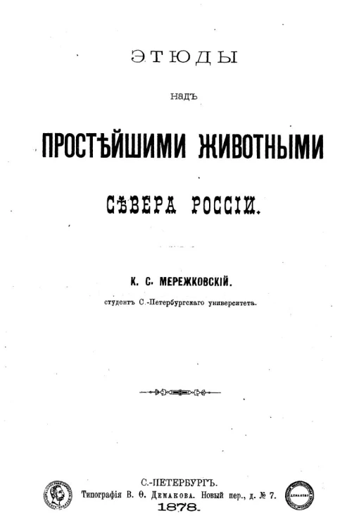 Издание Этюды над простейшими животными Севера России Вы можете заказать у нас. Мы предлагаем изготовление под заказ репринтных книг, отчетов, докладов, журналов, газет, донесений, указов, плакатов, грамот, открыток и других листовых документов различных тематических категорий и жанров на русском и иностранном языках, издаваемых в 17, 18, 19, начале 20 века.